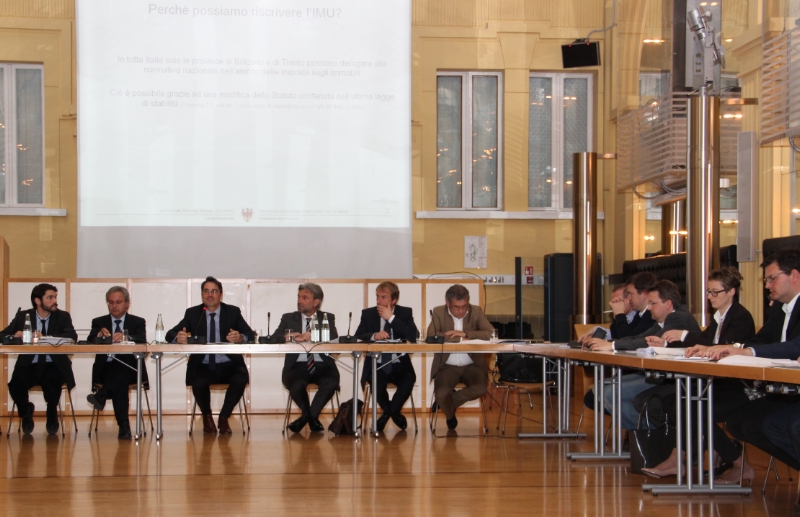 Flankiert von Gemeinden-Landesrat Arnold Schuler und dem Präsidenten des Gemeindenverbands, Andreas Schatzer, hat Kompatscher den Vertretern der Sozialpartner die Neuregelung der Gemeindeimmobiliensteuer erläutert und zunächst betont, dass diese ein Novum sei: "Zum ersten Mal können wir die Immobiliensteuer autonom und damit unabhängig vom Staat regeln", so der Landeshauptmann, der zudem unterstrichen hat, dass die GIS keine zusätzliche Steuer sei, sondern die IMU und die von Rom auf den Weg gebrachte TASI ersetze. Deshalb wird Steuerzahlern und Steuerbeistandszentren geraten, die neue GIS abzuwarten und die erste IMU-Rate nicht zu zahlen.
