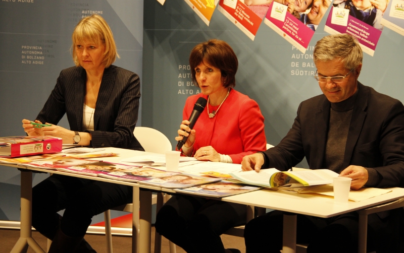 Pressekonferenz zum fünften Geburtstag der Elternbriefe mit Projektleiterin Schmid, Landesrätin Deeg und Ressortdirektor Stefan Walder - Foto: LPA/Karin Leiter