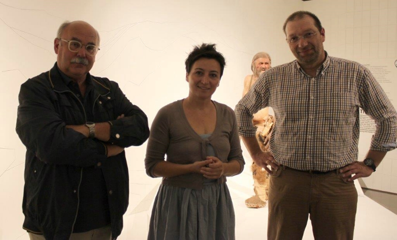 Übergabe bei Ötzis Konservierung 2016: (v.l.n.r.) Eduard Egarter Vigl, Angelika Fleckinger, Oliver Peschel (© Südtiroler Archäologiemuseum)
