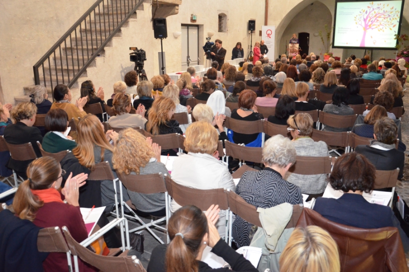Die bisherigen Erfolge für mehr Chancengleichheit zwischen Mann und Frau, die aktuellen Themen und Diskussionen um die Gleichstellung der Geschlechter sowie ein Ausblick in die Zukunft standen im Mittelpunkt der Jubiläumsfeier des Landesbeirates für Chancengleichheit für Frauen am heutigen Freitagabend auf Schloss Maretsch in Bozen. "Engagierte Beiratsfrauen verschiedenster politischer Couleur und Herkunft haben im vergangenen Vierteljahrhundert Vieles zugunsten der Frauen in Südtirol verändert und dazu beigetragen, dass sich die Chancen der Frauen verbessert haben", dankte die Präsidentin des Landesbeirates Ulrike Oberhammer für das Engagement in den vergangenen 25 Jahren. "Die derzeitige Quotendiskussion zeigt aber, dass wir noch einen langen Weg vor uns haben. Vielfältige Themen wie etwa die Schließung der Lohnschere, die Vereinbarkeit von Beruf und Familie - auch in der Privatwirtschaft, die Gewaltprävention und die Gendermedizin werden uns weiterhin begleiten. Wir werden uns auch weiterhin für echte und nicht nur auf dem Papier bestehende Chancengleichheit einsetzen", so Oberhammer. "Die Jubiläumsfeier ist ein wichtiger Moment, um die aktuelle Position zu bestimmen, indem wir auf die erreichten Ziele der vergangenen 25 Jahre zurückblicken und die Ziele für die nächsten Jahre festlegen", betonte die Vizepräsidentin des Landesbeirates Franca Toffol, die den tagtäglichen Einsatz der Frauen für die Chancengleichheit in Südtirol unterstrich. Die Vizepräsidentin verwies auch darauf, dass es in Italien derzeit keine Ministerin für Chancengleichheit gibt, die "einen sehr starken Anschub darstellen könnte", so Toffol.