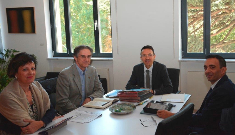 LR Christian Tommasini (2.v.r.) traf den Meraner Vize-Bürgermeister Rossi (2. v. l.), dabei waren auch Antonio Lampis und Barbara Nesticò.
