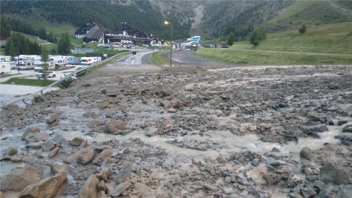 Nach den heftigen Gewittern mit Starkregen am gestrigen Abend (12. August) hatte eine Mure die Landesstraße 3 im Schnalstal bei der Ortschaft Kurzras in der Gemeinde Schnals verlegt.
