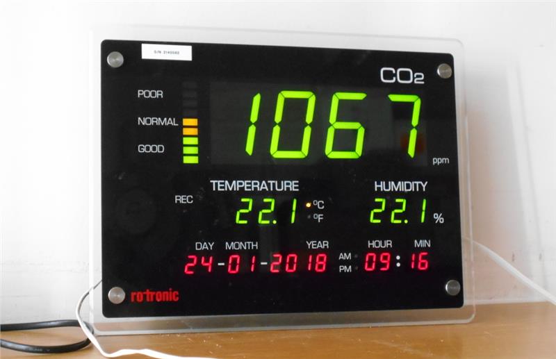 Die zur Verfügung stehenden Geräte messen pro Klasse zwei Wochen lang autonom die CO2-Konzentration und geben Aufschluss über die aktuellen Werte. Steigt die CO2-Konzentration in der Klassenluft auf über 1.400 ppm (parts per million: Teilchen pro eine Million Teilchen) an, ist es höchste Zeit zu Lüften. Zum Vergleich: Die Außenluft enthält nur circa 400 ppm CO2.