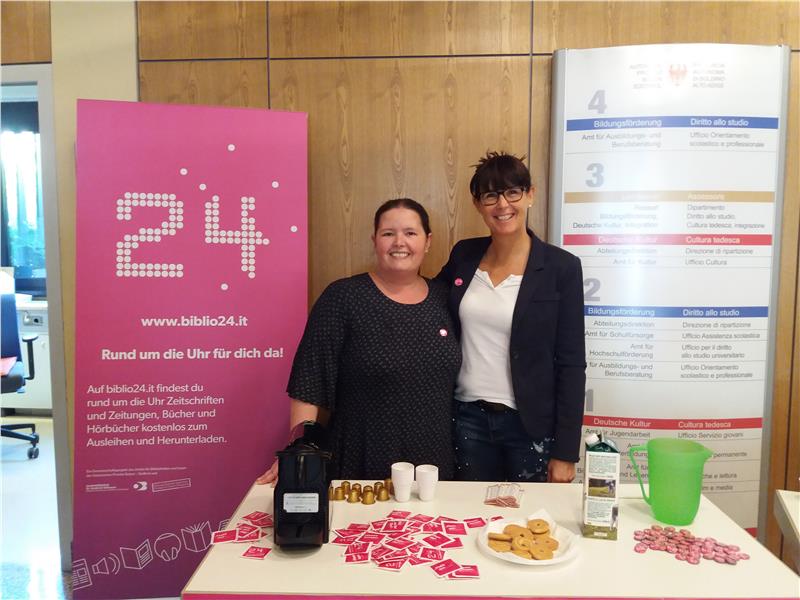 Um das Dienstleistungsangebot der Südtiroler Bibliotheken bekannter zu machen, läuft noch bis Ende dieser Woche eine Kampagne, bei der in Bars und Cafés in ganz Südtirol Zuckerbriefchen und Bierdeckel mit dem "Biblio24"-Logo verteilt werden. Auch über Radiospots und Plakat an den Bushaltestellen soll "Biblio24" beworben werden. Zudem werden an Ober- und Berufsschulen Buttons verteilt, um besonders Jugendliche auf das Angebot hinzuweisen. Betreut wird "Biblio24" vom Amt für Bibliotheken und Lesen der deutschen Kulturabteilung zusammen mit der Landesbibliothek "Teßmann", unterstützt von der Stiftung Südtiroler Sparkasse.