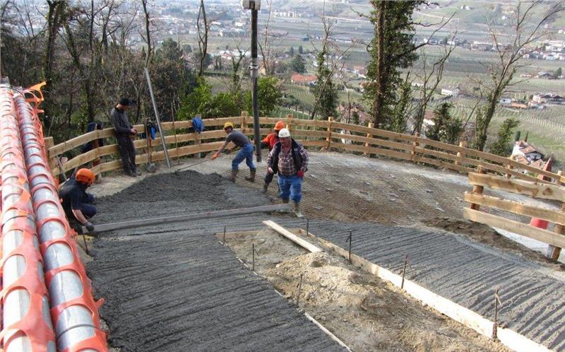 Die Vorarbeiten zum Ausbau sind derzeit voll im Gange: Vorarbeiter Stefan Kobald und sein Bautrupp haben unter schwierigsten Bedingungen einen Zufahrtsweg zum Becken errichtet. In den kommenden Wochen wird hier eine kleinere Betonsperre entstehen, die als Fundament für die geplante Rückhaltesperre dienen soll. Die Kosten für diese Maßnahme belaufen sich auf rund 85.000 Euro. Als Projektant zeichnet Amtsdirektor Mauro Spagnolo verantwortlich.