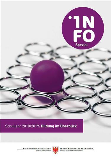 In diesen Tagen hat die Deutsche Bildungsdirektion die druckfrische Broschüre "INFO Spezial" an alle deutschsprachigen Kindergärten und Schulen im Land verteilt. Die Schrift enthält die aktuellen Daten zu den Kindergärten, Grund-, Mittel- und Oberschulen, den Berufs- und Fachschulen mit deutscher Unterrichtssprache sowie zu den deutschen und ladinischen Musikschulen des Landes.