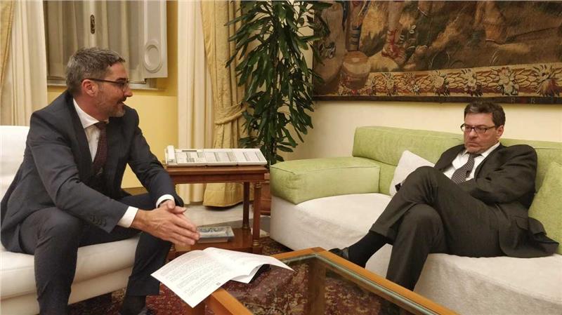 Landeshauptmann Kompatscher im Gespräch mit Staatssekretär Giorgetti - Foto: LPA/Alexander Steiner