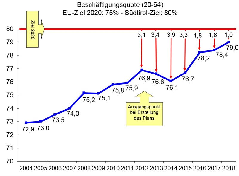 80 Prozent lautet das Südtirol-Ziel 2020 bei der Beschäftigungsquote: Ein Jahr vorher fehlt nur ein Prozentpunkt, um es zu erreichen.