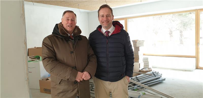 Über den Stand der Arbeiten am italienischen Schulsprengel "Langer" in Sterzing hat sich LR Bessone kürzlich vor Ort informiert. Der Bau verläuft planmäßig.