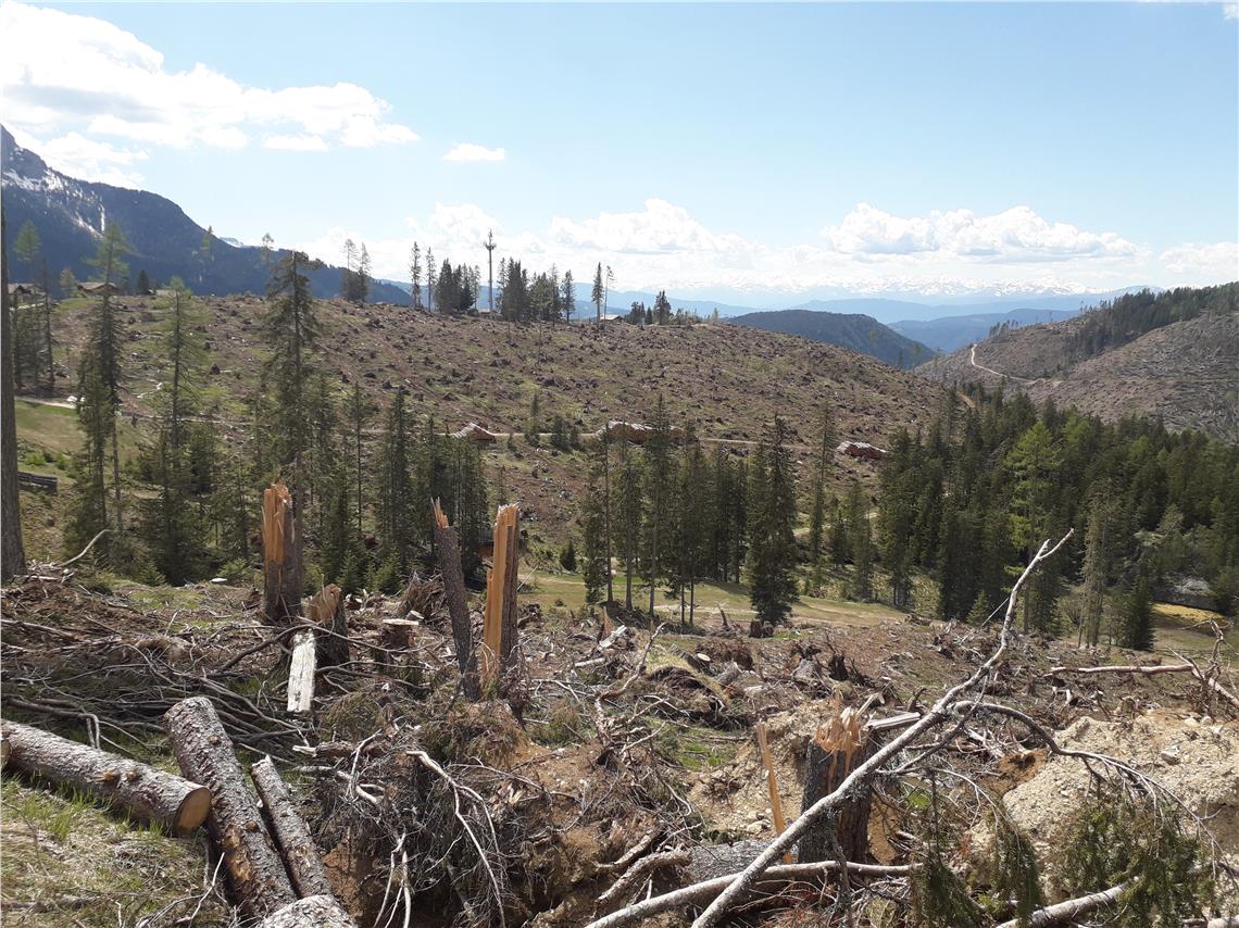 Die landesweiten Erhebungen, auch mit Hubschraubern, der konzentrierten Schadensflächen sind mittlerweile abgeschlossen: Die südtirolweit von den Windwurfereignissen betroffene Fläche beträgt insgesamt 5918 Hektar, das sind 1,7 Prozent der Waldfläche. 1463 Windwurfflächen wurden digitalisiert, von einer Mindestgröße von rund 20 Quadratmetern bis zu 280 Hektar. Betroffen waren vorwiegend Fichten- oder Fichten-Tannen-Bestände, nur neun Prozent sind Lärchen- und Zirbenbestände.
