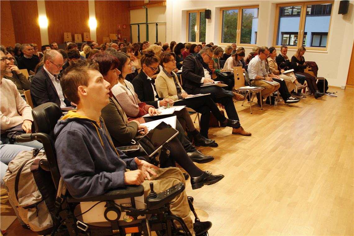 Franz Lemayr, ehemals Inspektor für Inklusion an der Deutschen Bildungsdirektion, sprach in seinem Impulsvortrag zum Thema "Inklusive Pädagogik, Menschenrechte und die Frage nach einer angemessenen Schule". Er betonte unter anderem, dass Inklusion ein Prozess sei, der nie ende. Oft reiche es auch, kleine Schritte in die richtige Richtung zu machen. Annemarie Kummer Wyss von der Pädagogischen Hochschule Luzern referierte zum Thema "Schnittstellen oder Nahtstellen? Damit Jugendliche zwischen Schule und Arbeit nicht zwischen Stühle und Bänke geraten".