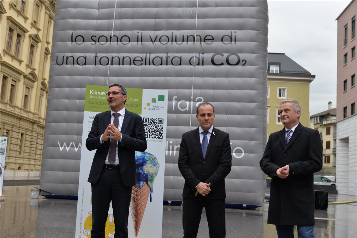 Acht mal acht mal acht Meter groß ist der riesige aufblasbare Würfel, der derzeit mitten auf dem Silvius-Magnago-Platz in Bozen steht. Sein Volumen vermittelt einen konkreten Eindruck, wie groß eine Tonne des klimaschädlichen Treibgases Kohlendioxid (CO2) ist. Der CO2-Kubus markiert den Auftakt für die CO2-Sensibilisierungskampagne der Agentur für Energie Südtirol - KlimaHaus und wird noch bis 29. November zu bestaunen sein. Ziel ist es, ein starkes Zeichen zum Thema Klimaerwärmung und Kohlendioxid zu setzen. "Der Klimawandel betrifft uns alle. Wir müssen sofort damit beginnen, unser Verhalten in allen Lebensbereichen zu ändern", unterstreicht dazu Landeshauptmann Arno Kompatscher. "Diese Änderung bedeutet aber nicht, – und das ist wichtig – dass wir unsere Lebensqualität einschränken müssen, im Gegenteil, wir können sie dadurch verbessern."
