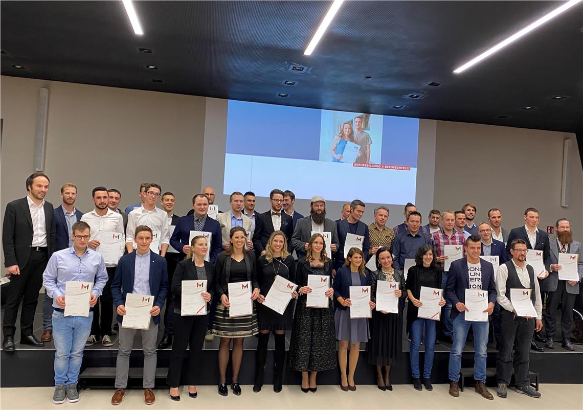 Eine Meisterin oder ein Meister fällt nicht einfach so vom Himmel. Um sich so nennen zu dürfen, bedarf es einer anspruchsvollen Ausbildung, harter Arbeit, Fleiß und einiger Entbehrungen. Das wissen die diesjährigen 51 Absolventinnen und Absolventen von Meisterausbildungen in Handwerk und Gastgewerbe nur zu gut. Egal ob Maler und Lackierer, Zimmerer, Vergolder, Herrenschneider oder Gärtner: Sie alle haben berufsbegleitend über mehrere Jahre Meisterkurse mit 1000 und mehr Stunden besucht. Bei den entsprechenden Prüfungen müssen sie dann fachliches Können in Theorie und Praxis ebenso beweisen wie Knowhow in Unternehmensführung und Ausbildung von Lehrlingen.