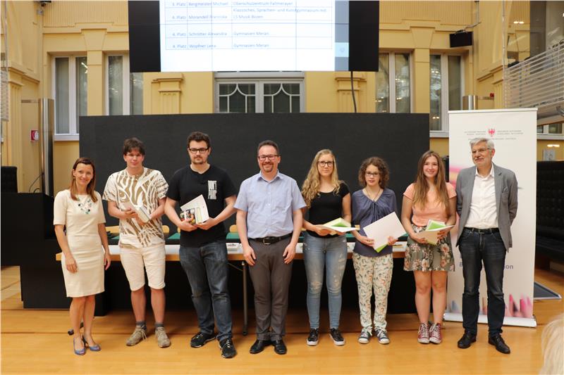 Erstplatzierter mit einem Essay über das Adorno-Zitat wurde Felix Nussbaumer von der Klasse 4DM im Klassischen, Sprachen- und Kunstgymnasium mit Landesschwerpunkt Musik Walther von der Vogelweide in Bozen, den zweiten Platz erreichte Lena Wild von der 4C des Realgymnasiums Bozen mit einem Essay über das Karl-Marx-Zitat, gefolgt von Marie Unterholzner - ebenfalls 4C des Realgymnasiums Bozen - mit einem Essay über das Schopenhauer-Zitat auf Platz 3. Auf den weiteren Plätzen folgen die viertplatzierte Johanna Luther (Sprachengymnasium Meran), an fünfter Stelle Hannes Prousch (Realgymnasium Bozen), an sechster Elias Lageder (Oberschulzentrum Fallmerayer Brixen), Hannah Lena Zuech (Realgymnasium Meran) auf Platz 7, Raoul Mittersteiner (Realgymnasium Bozen) auf Platz 8, Michael Bergmeister (Oberschulzentrum Fallmerayer Brixen), Elias Dellago (Oberschulzentrum Fallmerayer) und Lukas Dorfmann (Sozialwissenschaftliches Gymnasium Brixen) teilen sich Rang 9. Lena Wild gewann den Bundeswettbewerb, der heuer in Salzburg ausgetragen wurde.