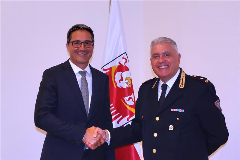 Seit kurzem leitet Luigi Peluso die Straßenpolizei von Südtirol, Trentino und der Provinz Belluno. Mit Anna Lisa Mongiorgi hat auch Bozens Straßenpolizei seit kurzem eine neue und erstmals weibliche Kommandantin. Die beiden Führungskräfte der "Polstrada" haben heute (9. August) Südtirols Landeshauptmann Arno Kompatscher einen Antrittsbesuch abgestattet. Landeshauptmann Kompatscher verwies auf die gute Zusammenarbeit der beiden Verwaltungen insbesondere im Hinblick auf die Sicherheitskontrollen besonders auf der Brennerautobahn.