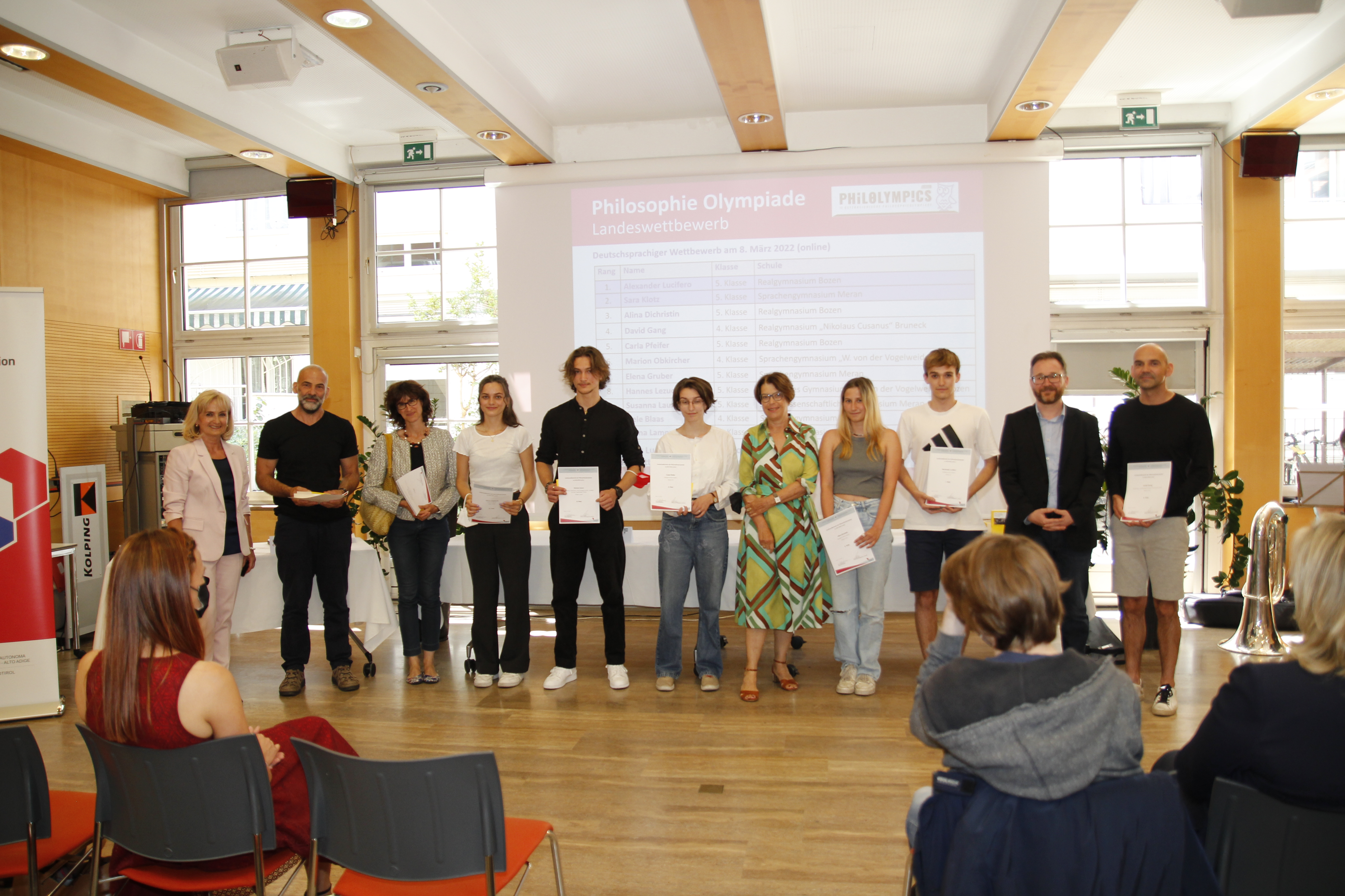 Die 45 Olympionikinnen und Olympioniken aus 14 deutschsprachigen Oberschulen, die bei den Landes-, Regional- oder gesamtstaatlichen Wettbewerben der Mathematik-, Informatik-, Physik-, Chemie- und Philosophieolympiade im Schuljahr 2021/22 die besten Platzierungen erreicht haben, sind heute (8. Juni) im Kolpinghaus in Bozen von Landesrat Philipp Achammer, Landesschuldirektorin Sigrun Falkensteiner und der Direktorin der Pädagogischen Abteilung der Deutschen Bildungsdirektion Gertrud Verdorfer mit Buchpreisen und Urkunden ausgezeichnet worden. Einige der Olympioniken machten mit Spitzenergebnissen auf sich aufmerksam (PowerPoint-Präsentation im Anhang).