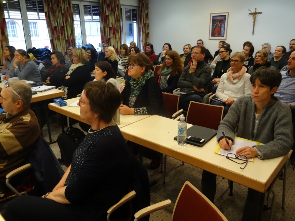 Gastreferent Wolfgang Vogelsänger, Direktor einer integrierten Gesamtschule in Göttingen ohne Noten mit Lernentwicklungsberichten, stellte den 48 Teilnehmenden im Jänner 2018 bei der Auftaktveranstaltung ein innovatives Schulkonzept vor.