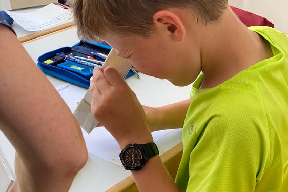 Im Workshop "Mathematik – logisch und genial" hingegen widmeten sich die Teilnehmenden der Mathematik, deren Gesetze auch dort zu finden sind, wo man sie nicht vermutet: in der Natur, in der Kunst und in der Umwelt. Die Referentinnen Monika Gatterer und Monica Santi experimentierten mit den Schülerinnen und Schülern unter anderem mit Spiegeln und mit dem Kaleidoskop.