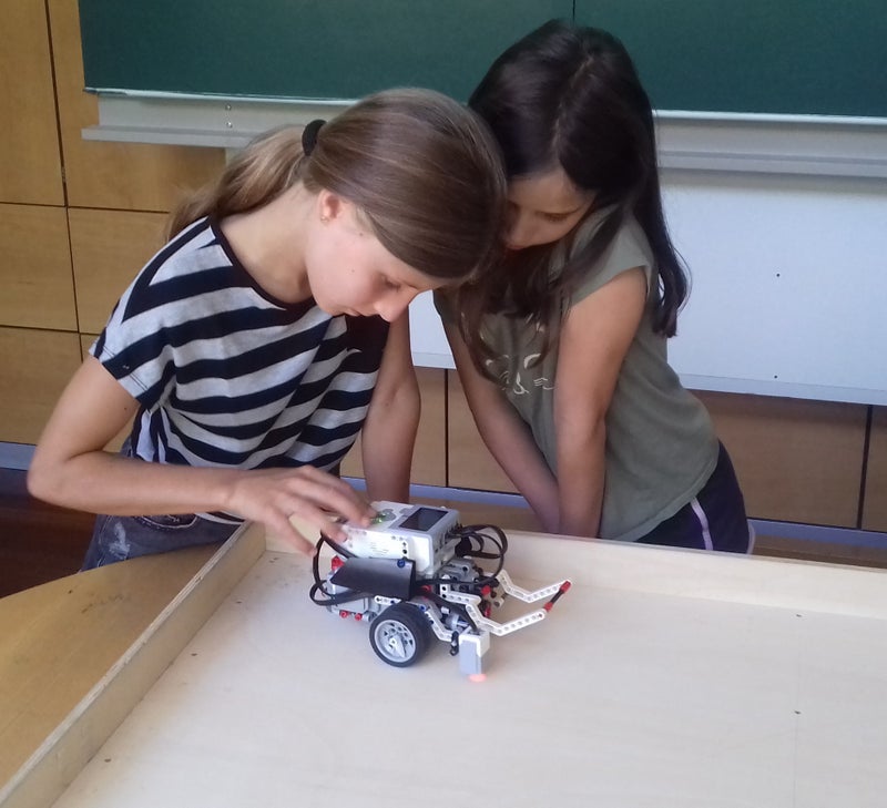 Im Workshop "Lego-Roboter bauen und programmieren" arbeiteten die Kinder mit Hilfe des Tablets und einer einfachen Programmiersprache an selbst gebauten Lego-Modellen. Die Roboter waren danach imstande, sich selbstständig zu bewegen, Farben oder Hindernisse zu erkennen und auf einem eigenen Spielfeld ihre Geschicklichkeit zu zeigen. Die Workshopleiter Philipp Egger und Martin Niederkofler standen den Schülerinnen und Schülern bei ihrer Arbeit mit Rat und Tat zur Seite.