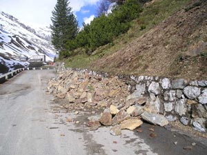 Tra il 4 ed il 5. tornante si è dovuto, inoltre, ripristinare provvisoriamente il muro i sostegno che dovrà essere sistemato in via definitiva con un secondo intervento.