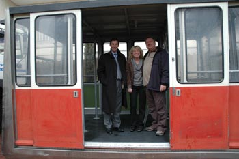 L'assessore provinciale Thomas Widmann ha consegnato una delle vecchie cabine in funzione lungo la funivia del Renon al nuovo proprietario. Si tratta di Franz Heel, di Lana, che ora la esporrà all'interno del giardino di una pensione.
