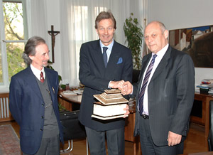Un cofanetto del XIV secolo è l'ultima acquisizione del Museo provinciale di Castel Tirolo: il presidente della Provincia Luis Durnwalder, che presiede il CdA del Museo, lo ha preso in consegna oggi (1° aprile) a Bolzano dal presidente della Fondazione Cassa di risparmio Gerhard Brandstätter. Con il sostegno della Fondazione il prezioso cofanetto è stato acquistato a Firenze.
