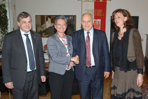 L'accesso degli studenti altoatesini dei tre gruppi linguistici alle facoltà universitarie austriache, le esperienze di integrazione linguistica e gli scambi nei settori della cultura: questi i principali temi al centro del colloquio del presidente della Provincia Luis Durnwalder con il ministro austriaco dell'Istruzione e della cultura, la signora Claudia Schmied, giunta stasera (7 aprile) a Bolzano. Il ministro è ospite in Alto Adige fino a giovedì per visitare una serie di scuole, strutture culturali e atelier artistici.