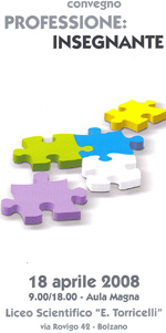 Si svolgerà venerdì 18 aprile, nell’Aula magna del Liceo Scientifico di Bolzano “Evangeslista Torricelli”, in via Rovigo,42 a Bolzano, il convegno: “Professione: insegnante”.