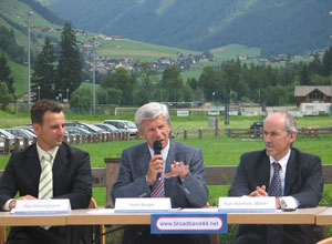 Assieme al sindaco Paul Schwingshackl, a Johann Silbernagl della RAS e a Karl Manfredi dell'associazione temporanea di imprese "Broadband 44+", l'assessore Berger ha illustrato in piazza Municipio a Casies le fasi di realizzazione del collegamento a banda larga in Alto Adige, attraverso l'utilizzo della rete a fibre ottiche e delle antenne radio. I limiti di esposizione per la protezione della popolazione sono ampiamente rispettati, come ha spiegato oggi il direttore del Laboratori provinciale di chimica fisica, Luca Verdi.