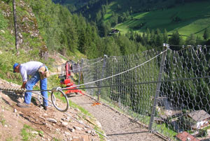 Gli interventi si sono resi necessari per mettere al riparo sia gli abitanti della località Rußbachhof, sia la strada d'accesso alla zona Trippachhaus, dall'incombente rischio di caduta massi. Le pareti della montagna sono state rinforzate con una barriera lunga 260 metri e alta cinque, e con un'ulteriore muro di protezione lungo 250 metri e alto cinque. "Per ridurre l'impatto estetico indubbiamente forte dei due interventi - sottolinea il direttore della Ripartizione opere idrauliche Rudolf Pollinger - abbiamo deciso di intraprendere tutte le azioni necessarie a favorirne un inserimento nel paesaggio che fosse il più graduale possibile". Le opere, finanziate dalla Ripartizione provinciale protezione antincendi e civile, sono costate circa 800mila euro, il 30% in meno di quanto preventivato.