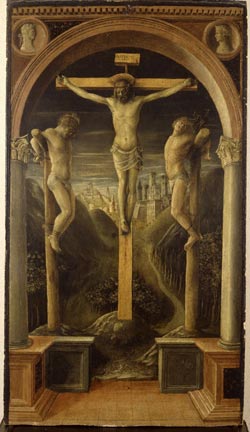 I teorici rinascimentali rielaborarono i teoremi dell’ottica antica e della geometria di Euclide e definirono una nuova procedura di costruzione dello spazio figurativo. Tappe fondamentali di questa nuova codificazione passano dalle tavolette ottiche realizzate da Brunelleschi alla prima trattazione teorica seguita da Leon Battista Alberti e quindi da Piero della Francesca. Seguendo questi principi teorici, Alessandra Sorci proporrà l’esame dell’impianto spaziale e costruttivo dell’opera di Vincenzo Foppa “I tre crocifissi” per verificare se vi fu o meno un’applicazione rigorosa di questi principi nella pratica pittorica dell’artista.