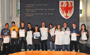 L’assessore provinciale alla Cooperazione, Roberto Bizzo, ha premiato questo pomeriggio a Palazzo Widmann a Bolzano i giovani che hanno preso parte al progetto Coopcup e nel corso della cerimonia il presidente di "Federsolidarietà Alto Adige", Paolo Tanesini, ha presentato nel dettaglio i risultati raggiunti dal progetto.