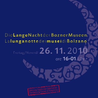 La IX edizione della "Lunga notte dei musei di Bolzano" avrà luogo venerdì 26 novembre 2010.