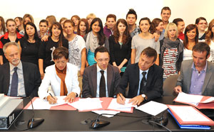 Nell’ambito del progetto "Gemeinsam-Insieme" l’Istituto per l’economia ed il turismo – sezione Sociale “Robert Gasteiner” e l‘Istituto di Istruzione Secondaria per le Scienze Umane e per i Servizi “Claudia de‘ Medici” di Bolzano hanno predisposto dei progetti didattici congiunti finalizzati ad un migliore apprendimento della seconda lingua. Le apposite convenzioni che disciplinano la collaborazione fra gli istituti scolastici sono state siglate dai dirigenti scolastici Maria Brigitte Meraner e Renzo Roncat questa mattina, martedì, 4 ottobre 2011 nell’Aula Magna dell’Istituto “Claudia de’ Medici“ a Bolzano alla presenza del vicepresidente della Provincia Christian Tommasini e degli ispettori per la 2a lingua delle Intendenze scolatiche italiana e tedesca, Franz Lemayr e Marco Mariani.