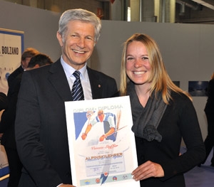 Sono stati consegnati oggi dall’assessore provinciale Hans Berger, nell’ambito della Fiera degli sport invernali “Prowinter”, i diplomi a 77 nuovi maestri di sci ed inoltre 33 diplomi di specializzazione. Presente alla cerimonia anche l'assessore ai lavori pubblici, Florian Mussner.