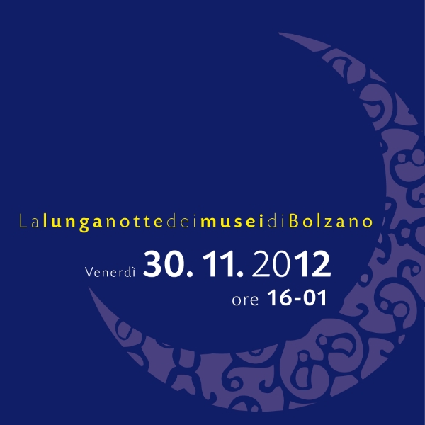 Sette musei bolzanini aperti gratuitamente fino a ora tarda, immersi in un'avvolgente atmosfera notturna, e un programma speciale di mostre, letture, musica, visite guidate, laboratori e tante novità: avrà luogo venerdì 30 novembre 2012, dalle ore 16 alle 01, l'undicesima edizione della Lunga notte dei musei di Bolzano.