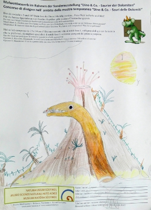 Naturalmente, entrambe le tracce facevano riferimento a reperti esposti nell'ambito di "Dino & Co. - Sauri delle Dolomiti", ovvero dinosauri e affini. Bastava poi utilizzare il foglio per comporvi, con la tecnica preferita e molta fantasia, il proprio disegno e rispedirlo al museo.