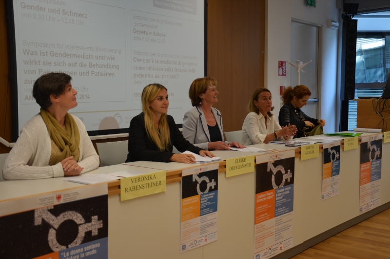 Kathrin Fischer medico specialista in anestesia, medicina intensiva e terapia del dolore di Merano, in rappresentanza di Rosmarie Oberhammer (sorella della presidente della Commissione provinciale per le pari opportunità Ulrike Oberhammer che ha sensibilizzato sul tema), ha citato alcuni esempi riferiti agli esiti della ricerca nell'ambito della medicina di genere. Come ha riferito donne e uomini sembrano avere, sia biologicamente sia a livello socio culturale, una diversa percezione del dolore. Ad esempio, è stato verificato che se bambine e bambini prima della pubertà soffrono di emicrania in modo similare, con la pubertà siano le bambine a soffrirne maggiormente. Differenti reazioni si riscontrano anche nell'assunzione di farmaci o in presenza di affezioni, come ad esempio per l'infarto che nelle donne ha sintomi differenti rispetto che negli uomini. Il simposio, come ha detto, ha il compito di responsabilizzare su queste differenze.