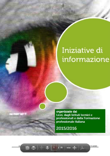 Un opuscolo, disponibile anche online, raccoglie tutte le Giornate delle porte aperte e i vari progetti informativi organizzati dai Licei, dagli Istituti tecnici e professionali e dalla Formazione professionale italiana per i ragazzi di terza media che entro il prossimo 15 marzo devono scegliere l'istituto superiore.