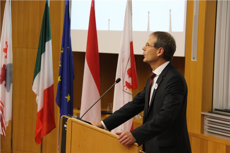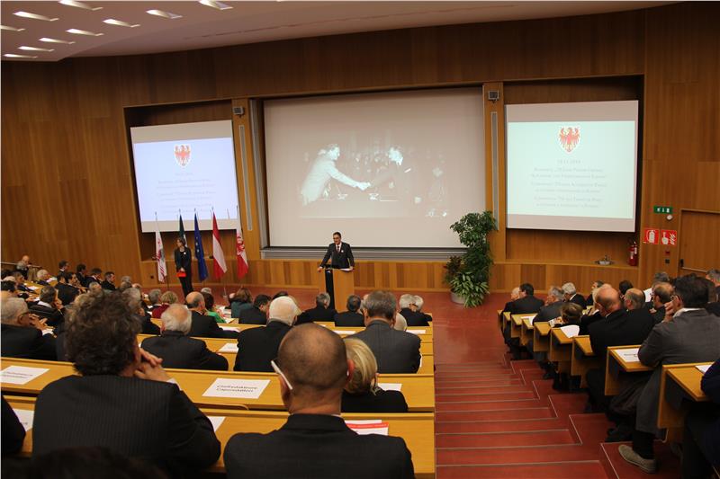 Il presidente Konrad Bergmeister ha aperto il proprio intervento citando Wilhelm Leibnitz come precursore del pensiero europeo che definì primo come “valore” il mantenimento della propria lingua e cultura e riconobbe l’importanza della tutela delle minoranze. Il vicerettore dell’Università di Innsbruck, Bernhard Fügenschuh, ha, invece, sottolineato il crescente livello di collaborazione tra i tre atenei dell’Euregio.