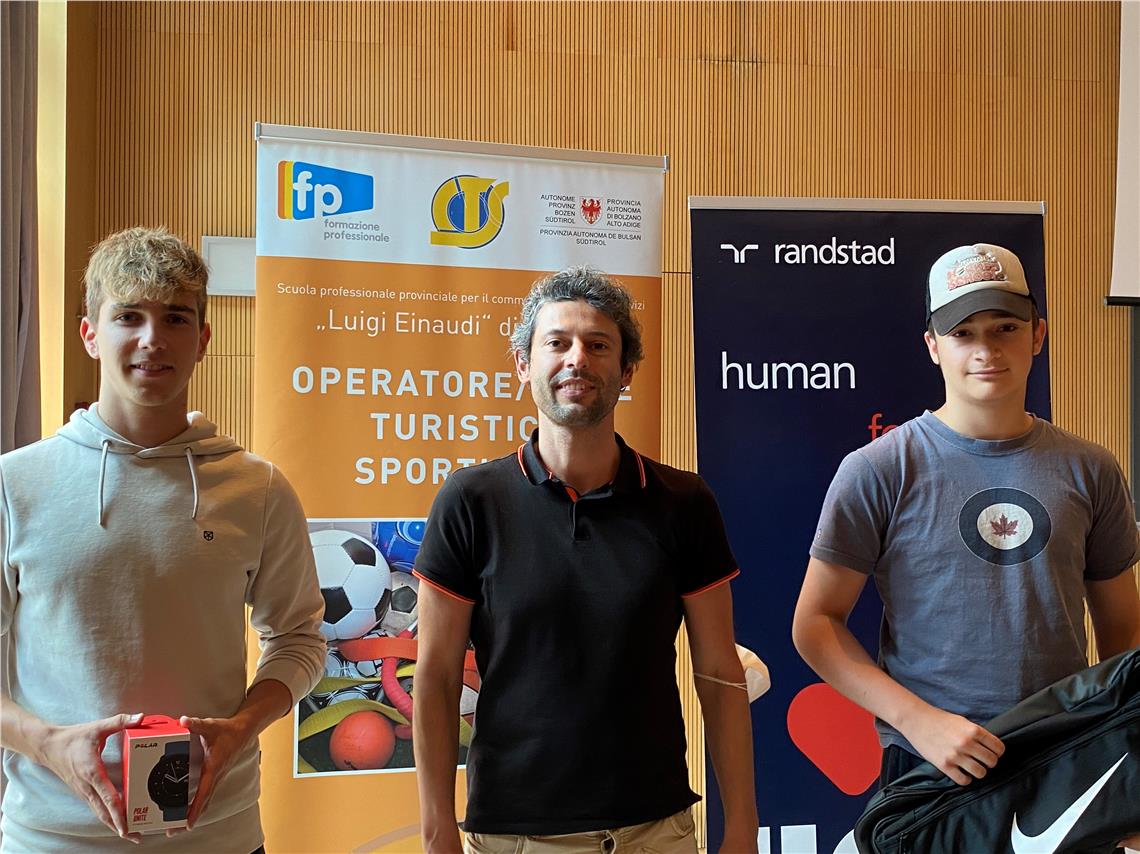 Dopo un anno di stop forzato e nel rispetto di tutte le norme di sicurezza è stato riproposto con successo l’evento di fine anno del Cts Einaudi-Olympia con i campioni dello sport. I ragazzi che frequentano il percorso ad indirizzo turistico-sportivo della Formazione professionale di lingua italiana si sono ritrovati in presenza per chiudere l’anno formativo 2020-2021 con l’ormai tradizionale appuntamento per condividere i progetti realizzati, consegnare gli attestati conseguiti al termine dei vari percorsi per ottenere i brevetti e nominare i vincitori del premio “l’Olimpionico” a chi si è particolarmente distinto nell’attività didattica e in ambito sportivo. Presenti alla giornata due testimonial d’eccezione: l’ex campione di pallavolo Giacomo “Jack” Sintini, oggi formatore di un'azienda di risorse umane e Laura Sberna, arbitro di calcio di lungo corso e manager di Randstad.