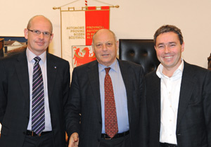 LPA - Otmar Michaeler, der neue Präsident der Südtiroler Volksbank, stattete heute (10. November) gemeinsam mit Volksbank-Generaldirektor Johannes Schneebacher Landeshauptmann Luis Durnwalder einen Besuch ab. Im Mittelpunkt des Gesprächs stand die Zusammenarbeit zwischen der Volksbank und der Südtiroler Wirtschaft.