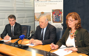 Landeshauptmann Luis Durnwalder, die Landesrätin für Bildung und Kultur, Sabina Kasslatter Mur, Ressortdirektorin Karin Dalla Torre und die Leiterin des Südtiroler Landesarchivs, Christine Roilo, stellten das zu errichtende Zentrum für Regionalgeschichte heute gemeinsam mit dem Präsidenten der Freien Universität Bozen, Konrad Bergmeister, Vize-Präsident Pietro Borgo und dem Vorsitzenden des Vereins "Geschichte und Region", Andrea Bonoldi, vor.