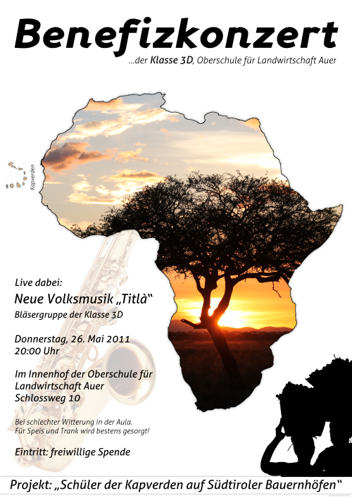 In diesem Schuljahr führt die Klasse 3D das Projekt weiter und bereitet für die Gäste aus Fogo ein gemeinsames Praktikum auf Südtiroler Bauernhöfen vor. Die bisher gesammelten Spenden und der Beitrag des Landes reichen noch nicht aus, um die Reisespesen der zehnköpfigen Schülergruppe aus diesem westafrikanischen Land zu decken. Deshalb wird am Donnerstag, dem 26. Mai, um 20.00 Uhr im Innenhof der Oberschule für Landwirtschaft in Auer zu einem Benefizkonzert geladen, bei dem die Pusterer Folkgruppe Titlà und ein schulinternes Bläserensemble auftreten.