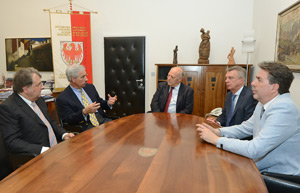 Landeshauptmann Durnwalder hat gemeinsam mit Landesrat Roberto Bizzo den Konzern-Vizepräsidenten Wachnowsky, den Präsidenten von MEMC Italien, Mauro Pedrotti, und den Direktor des Meraner MEMC-Ablegers Claudio Pasolli im Bozner Palais Widmann empfangen. Für Durnwalder war das heutige Treffen ein längst überfälliges: „Schon seit geraumer Zeit haben wir das Gespräch mit der Konzernspitze gesucht, um direkt aus dem Mund der Konzerspitze zu erfahren, welche Rolle das Werk in Sinich in der künftigen Konzernstrategie spielt. Schließlich haben wir uns in den vergangenen Monaten mit all den uns zur Verfügung stehenden Mitteln um den Erhalt der Arbeitsplätze eingesetzt. Mit der Verabschiedung des Regierungsdekrets zur Förderung des Wirtschaftswachstums, in dem ein eigener Passus für die MEMC enthalten ist, haben wir einen wichtigen Schritt zur Senkung der Stromkosten für den energieintensiven Betrieb gesetzt, aber schon vorher ist es uns gelungen, mit dem Netzbetreiber Terna die Anbindung des italienischen mit dem europäischen Stromnetz über die Brennerachse zu vereinbaren. Auf diese Weise haben alle Unternehmen und natürlich im Besonderen die MEMC die Möglichkeit, sich am europäischen Strommarkt zu bedienen.“
