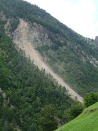 Die Abbruchstelle, präzisiert Amtsdirektor Mair, befindet sich nach dem zweiten Tunnel auf der orographisch rechten Seite, wo Schloss Juval steht. Landesgeologe Konrad Messner hat bei einem ersten Lokalaugenschein am Vormittag eine Anbruchstelle im steilen Gelände festgestellt: der Schnalswaal und der Waalweg wurden heruntergerissen. "Nach einer Stunde," führt Volkmar Mair aus, "stand fest, dass keine Gefahr besteht."