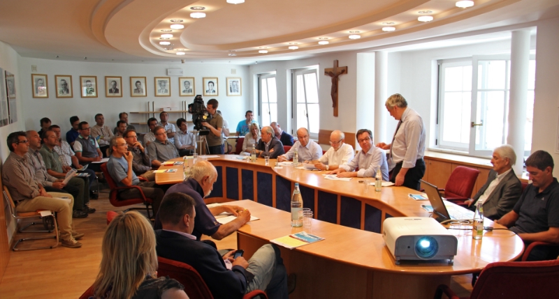 Bis Ende Juli 2013 hat das Land bereits 93 der 116 Südtiroler Gemeinden mit Glasfaserkabeln erschlossen. Dazu mussten rund 750 km Leerrohre verlegt und 640 Kilometer Glasfasern eingezogen werden. Landesweit sind außerdem schon über 40 Telefon-Knotenpunkte adaptiert worden und können so für ADSL-Internet verwendet werden, bis die Gemeinden die Glasfasern zu den privaten Haushalten verlegen. Genau diese Möglichkeit können in wenigen Wochen die Einwohner von St. Vigil in Enneberg in Anspruch nehmen. Im Rathaus traf sich heute Landesrat Mussner, um mit den Bürgermeistern des Gadertales, den Experten seines Ressorts, der RAS und der Internetanbieter eine Zwischenbilanz zum Stand der Arbeiten zu ziehen.