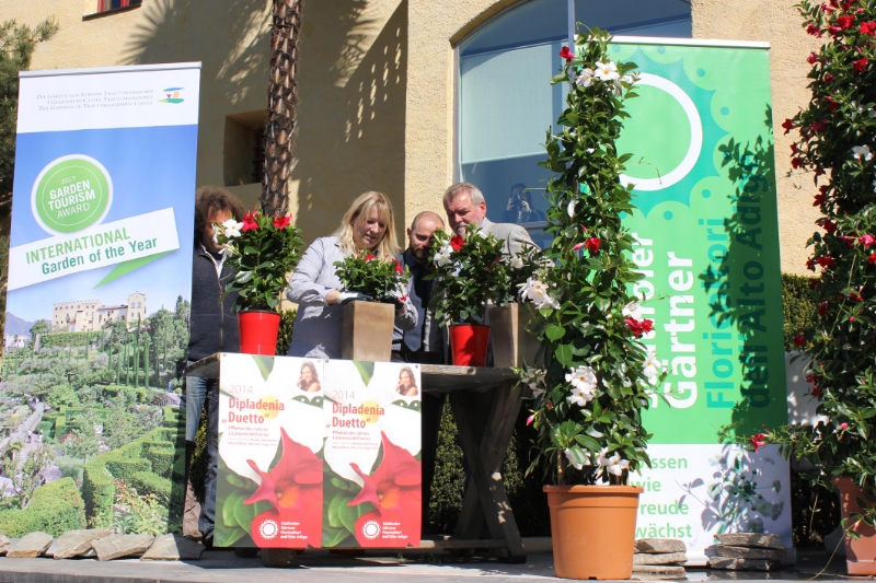 LPA - Dipladenia "Duetto" heißt die Pflanze des Jahres 2014. Sie wurde heute (16. April) auf der Sissi-Terrasse in Trauttmansdorff von der Südtiroler Gärtnervereinigung und den Gärten von Schloss Trauttmansdorff präsentiert.