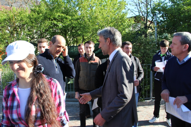 "Die Berglandwirtschaft in den Ostkarpaten", erklärt Landesrat Arnold Schuler, "ähnelt jener in Südtirol; deshalb hatte EU-Kommissar Dacian Ciolos vor drei Jahren dieses Projekt angestoßen. Es ermöglicht den Bauern seiner Heimat, vom Wissen und der Erfahrung der Südtiroler in der Verarbeitung und Veredelung von Milch zu lernen." Heute gab Landesrat Schuler seiner Freude darüber Ausdruck, dass diese Unterstützung gut ankommt. Lazar Latu von der regionalen Landwirtschaftsverwaltung sprach im Namen der Gruppe seinen Dank dafür aus, dass dreizehn junge Frauen und Männer aus dem Gebiet im Nordosten Rumäniens seit Montag in der Fachschule Salern die handwerkliche Milchverarbeitung erlernen. Auf dem Programm stehen neben Hygiene in der Sennerei etwa Entrahmung und Pasteurisieung, das Ansetzen von Labtopfen und das Abschöpfen von Graukäse, die Herstellung von Caciotta und Ricotta, erläutert Martin Tschurtschenthaler, verantwortlich für die Schulkäserei und die Milchverarbeitung an der Fachschule für Land- und Hauswirtschaft Salern. Heute besichtigt die Gruppe in Begleitung von Fachschuldirektorin Juliane Gasser Pellegrini und der Direktorin des Sennereiverbands Annemarie Kaser eine Hofkäserei und eine Alm in St. Martin am Kofel; unterwegs legten sie in Schulers Heimatort Plaus Zwischenenstation ein und ließen sich von ihm in die landwirtschaftlichen Gegebenheiten in Südtirol einführen. Bei dieser Exkursion dabei ist auch Martin Pazeller, Direktor der Landesabteilung Landwirtschaft: Vor knapp einem Jahr, berichtet er, waren Südtiroler Spezialisten in den Ostkarpaten, um einen fünftägigen Kurs zur Käseherstellung abzuhalten. Dabei ging es ging vor allem um die Verbesserung der Milchhygiene und die Veredelung von Milchprodukten für die Direktvermarktung und die Verabreichung am Betrieb. Die rumänische Landschaft mit ihren Bergen und Almen, hat er erfahren, würde sich gut für den Aufbau einer touristisch-landwirtschaftlichen Nutzung eignen. Dafür leistet nun Südtirol Hilfestellung.