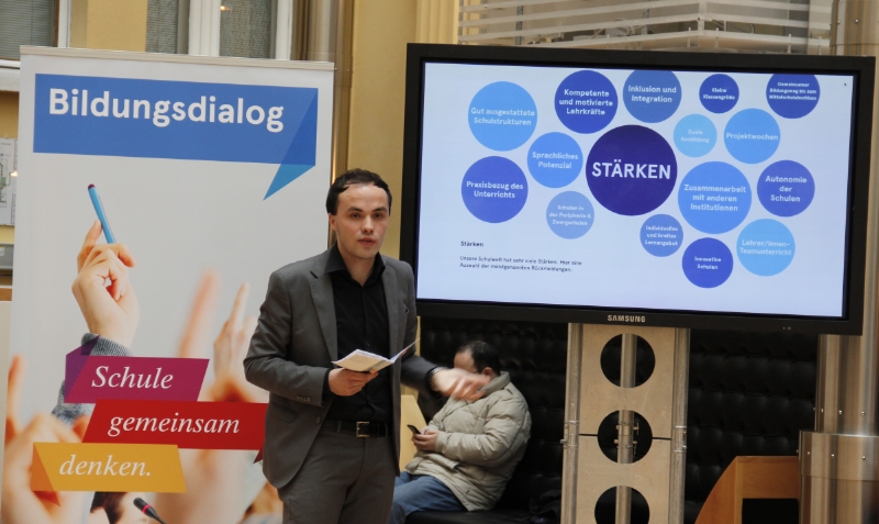 Die aktuellen Themen, die die Schule beschäftigen, sind in der zum Abschluss des Bildungsdialoges erstellten Ergebnisbroschüre zusammengefasst. Abgeschlossen seien jedoch lediglich die Dialogrunden, nicht der Bildungsdialog, erklärte Landesrat Philipp Achammer, der sich erfreut zeigte über die unglaublich große Lust, sich an der Weiterentwicklung der Qualität im Bildungswesen zu beteiligen.